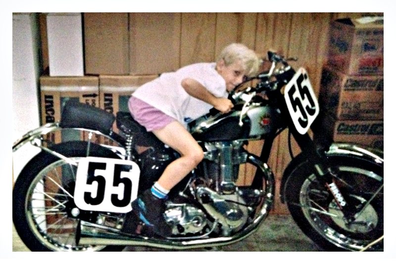 The Hall family racing dynasty began with their father, Stuart Hall. As children, the Hall brothers spent many summer weekends at racetracks with their dad. Far from being a collector whose bikes existed purely as eye candy, Stuart campaigned an old BSA Goldstar with the American Historic Racing Motorcycle Association (AHRMA). His sons worked as pit crew and in doing so received even more education in ancient bike engineering. Race bikes are pushed beyond the breaking point, so the brothers learned quickly how to improvise trackside repairs. When they each turned 18, they were able to race per the AHRMA rules, so two more vintage machines were pulled from Stuart’s collection and converted to racing trim. This was to become ground zero for their future business venture, though the brothers were too busy to notice. – by Arthur Treff
